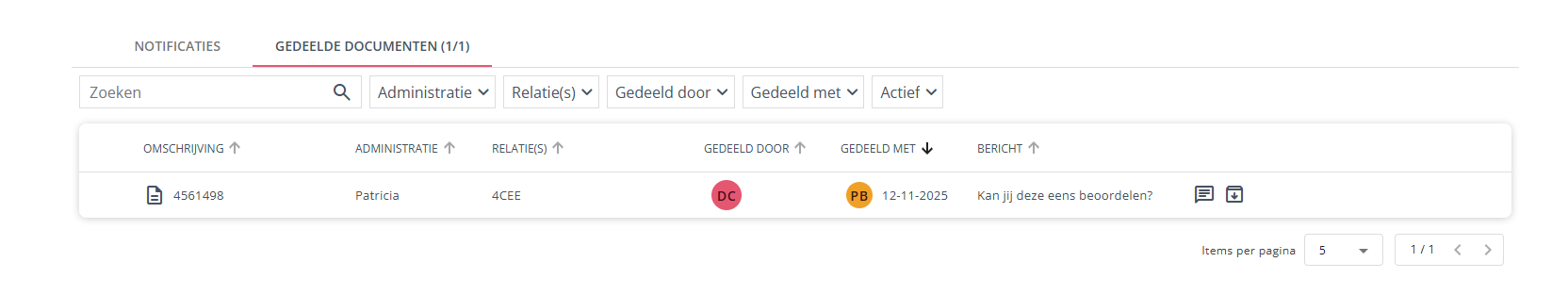 Shared invoices automatically appear on the user’s home screen, showing an overview of all documents shared with them. You can open an invoice by simply clicking on the line. You’ll also receive a notification when a new invoice is shared with you.