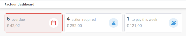 This article explains how to use the new invoice dashboard. This dashboard gives you instant insight into outstanding, urgent, and upcoming payments, and helps you identify trends and bottlenecks in the invoicing process.