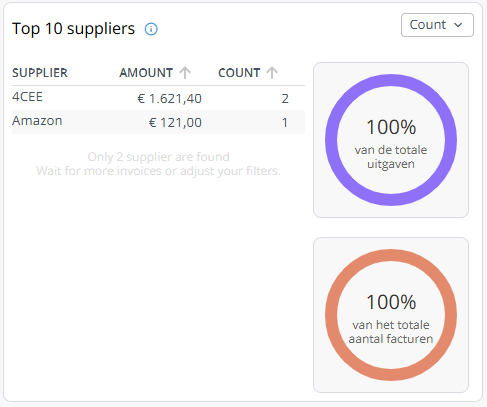 Additionally, you’ll see the percentage of the total (number or amount) per supplier.