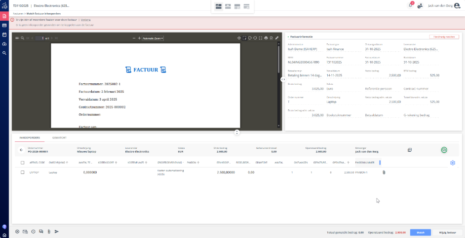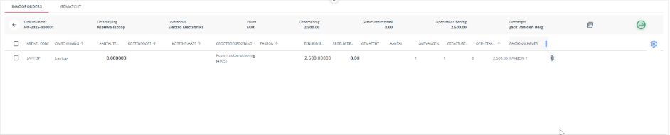 The order document is created by the software when a purchase request is made in Easy1 Purchase and is sent to the supplier. This order document is now also available within Easy1 Invoice to make invoice processing easier.
